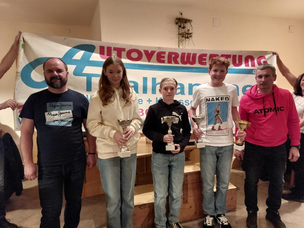 Sehr erfolgreich war dann auch die Siegerehrung beim Kirchenwirt in Reindlmühl. Fast alle waren gekommen, um den Rennnachwuchs des SCR zu feiern. Pokale, Medaillen und eine Tafel Schoko vom Sponsor Auto Thalhammer GmbH waren die Belohnung für jedes Kind, das beim Rennen dabei war, egal ob mit oder ohne kleinen Fahrfehler.